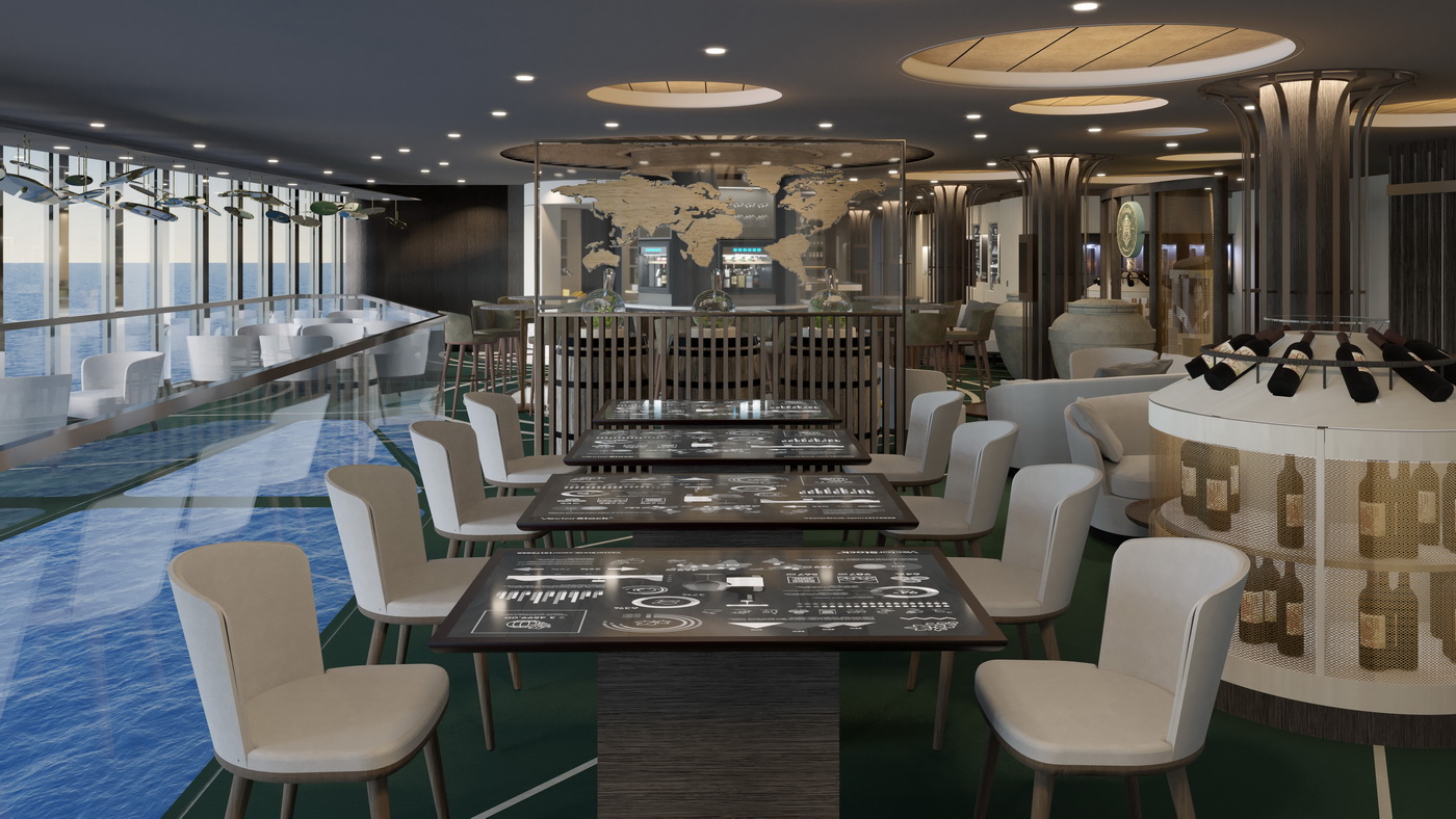Bei 96 verschiedenen Weinen sollte dabei für jeden Geschmack etwas dabei sein. Für den kleinen Hunger wird dazu eine Auswahl an Käse, Wurstspezialitäten, Fingerfood und Nüssen angeboten. Während der Kreuzfahrt werden hier auch Masterclasses stattfinden, bei denen die Gäste ihr Wissen erweitern und mit dem besonderen Know-how eines Weinkenners nach Hause zurückkehren können.