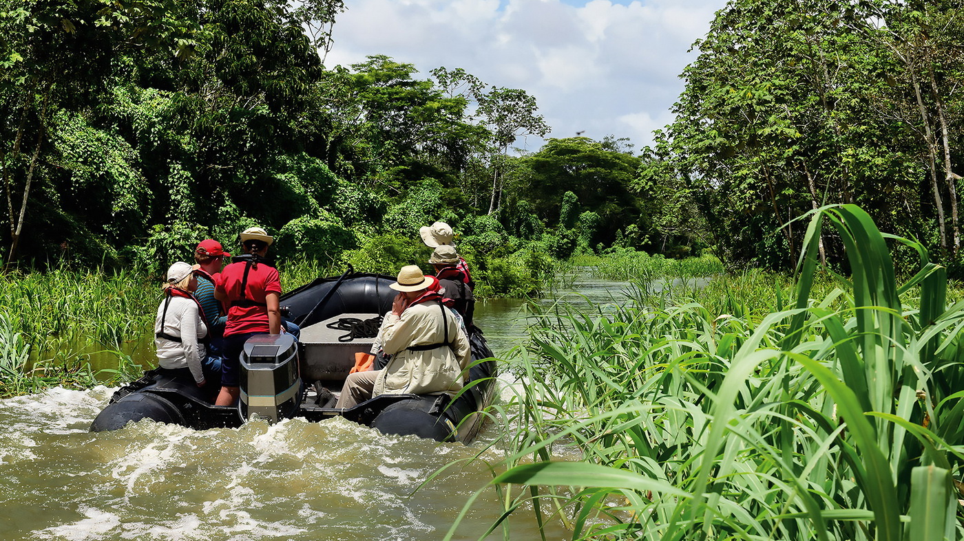 Das kleine, wendige Expeditionsschiff navigiert gekonnt entlang des engen Flusslaufes. Je nach Wetter- und Strömungsbedingungen erkunden die Gäste mit den Zodiacs verschlungene Seitenarme. Begleitet von den Rufen der Tukane, Gelbkopfkarakaras und Safranfinken geht es mitten ins grüne Herz Amazoniens bis hoch ins peruanische Iquitos. Momentan ist Hapag-Lloyd Cruises der einzige Anbieter, der so weit fährt.