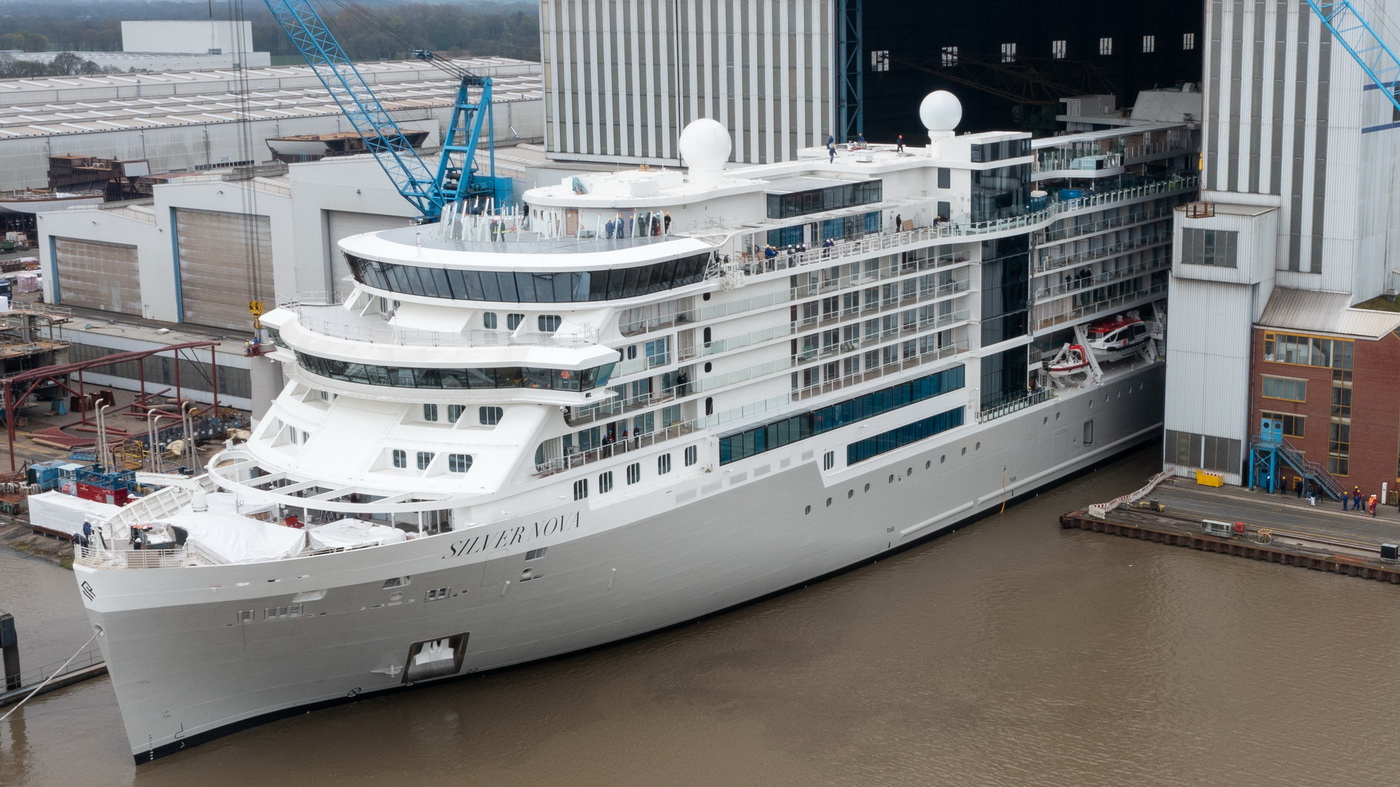 Als sich die Tore der Konstruktionshalle öffneten, war die Aufregung bei den Schaulustigen groß. Aber natürlich lief alles nach Plan: In nur wenigen Stunden wurde die Silver Nova an den Pier im benachbarten Hafenbecken manövriert, wo die Arbeiten an der Ausstattung fortgesetzt werden.