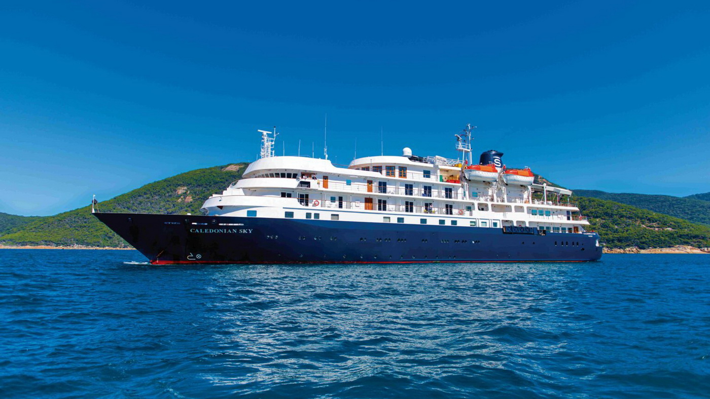 Die MS Caledonian Sky bietet geräumigen Boutique-Komfort für nur 114 Passagieren in 57 Suiten mit Meerblick. Die Gäste können auf dem privaten Balkon entspannen, die Panorama-Aussicht vom Sky Deck genießen, ein Glas Sekt in den beiden Lounges trinken und im Freien oder im Restaurant speisen, ehe sie vom Expeditionsteam mit den zehn Zodiacs des Schiffes zu den schönsten Stränden begleitet werden.