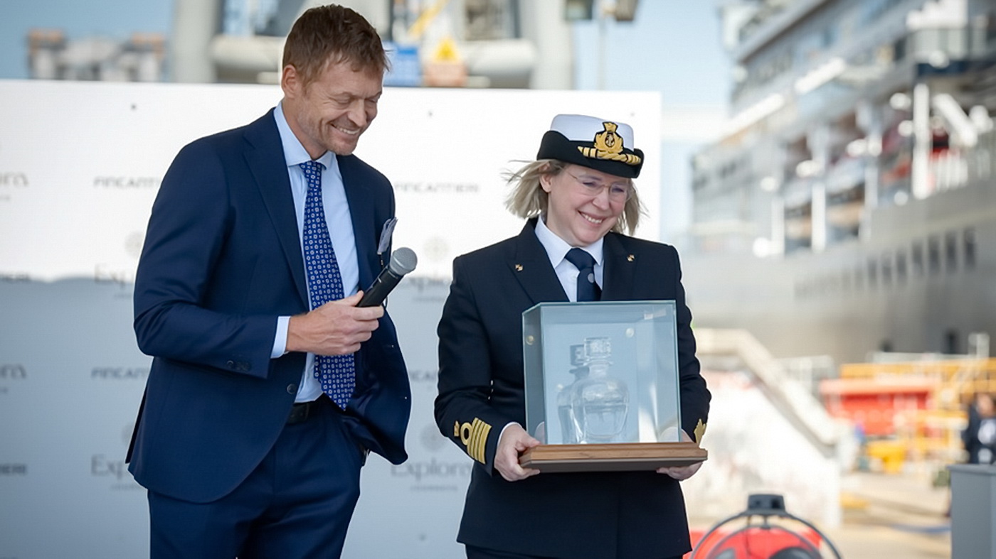 Explora I: Übergabe an die Reederei mit Taufe in Monfalcone