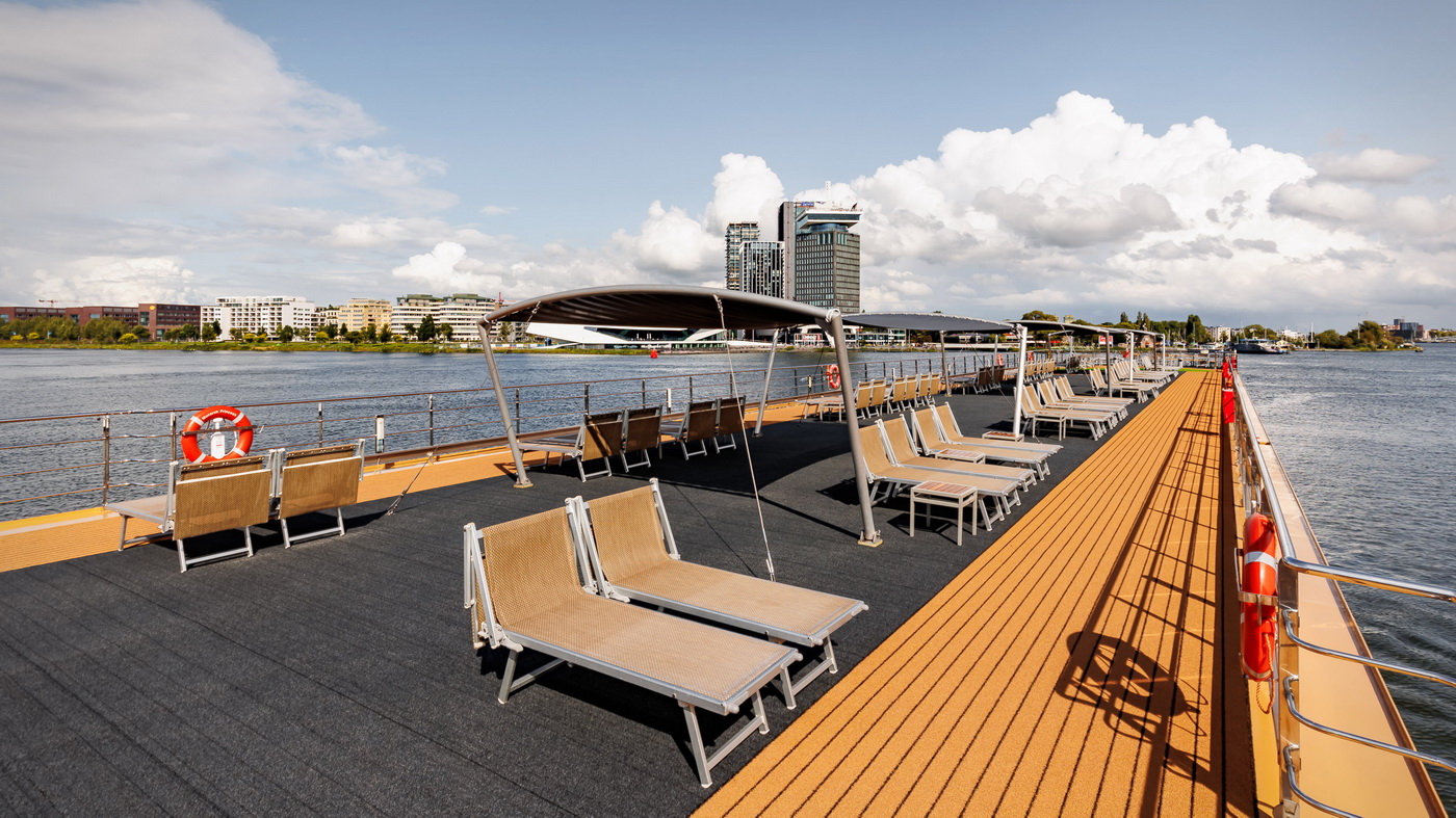 In der Panoramalounge im Bug der beiden Schiffe können sich die Gäste zudem bei bester Aussicht auf die vorbeiziehende Landschaft mit köstlichen Kreationen der A‑ROSA Barkarte verwöhnen lassen.