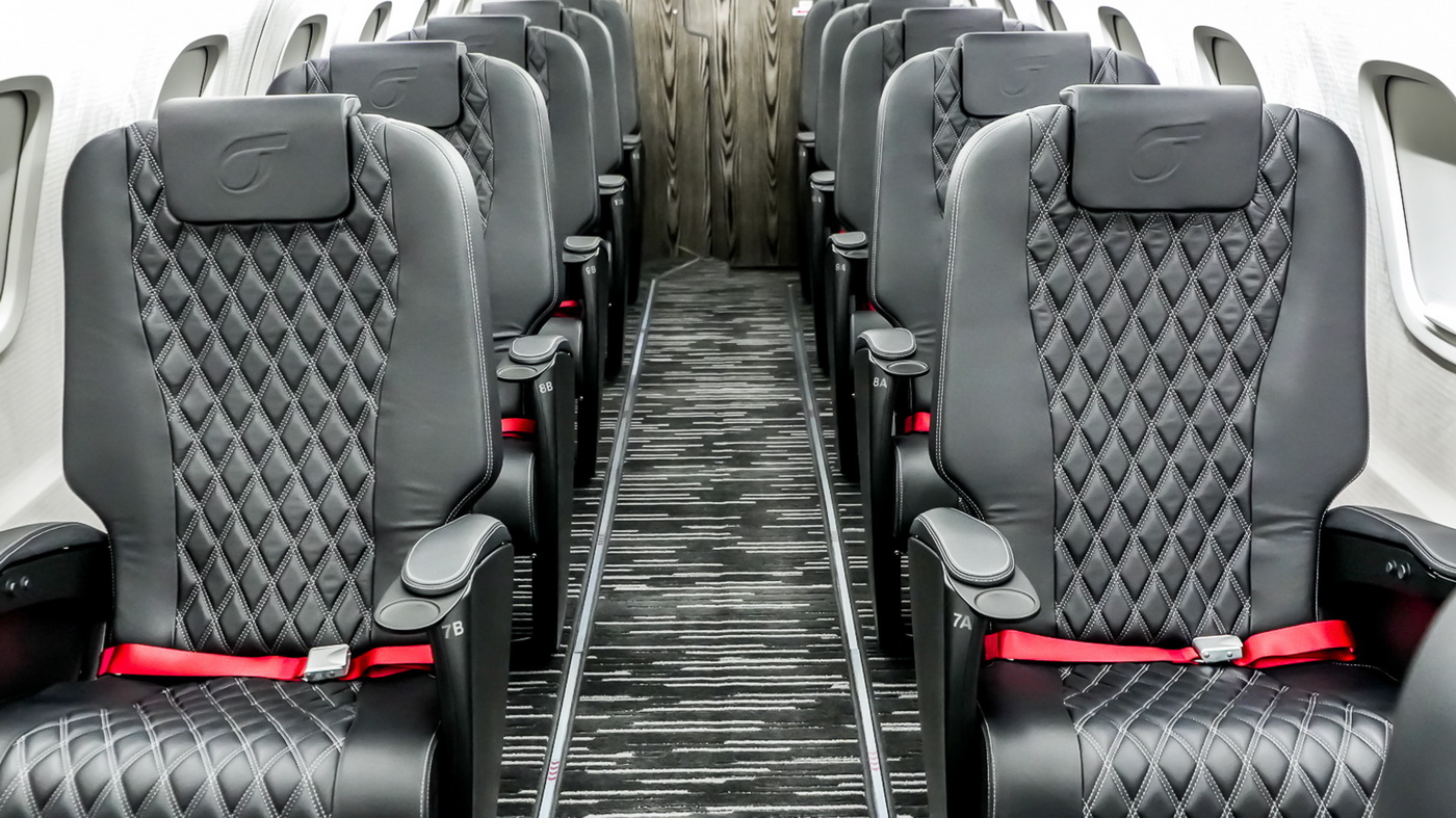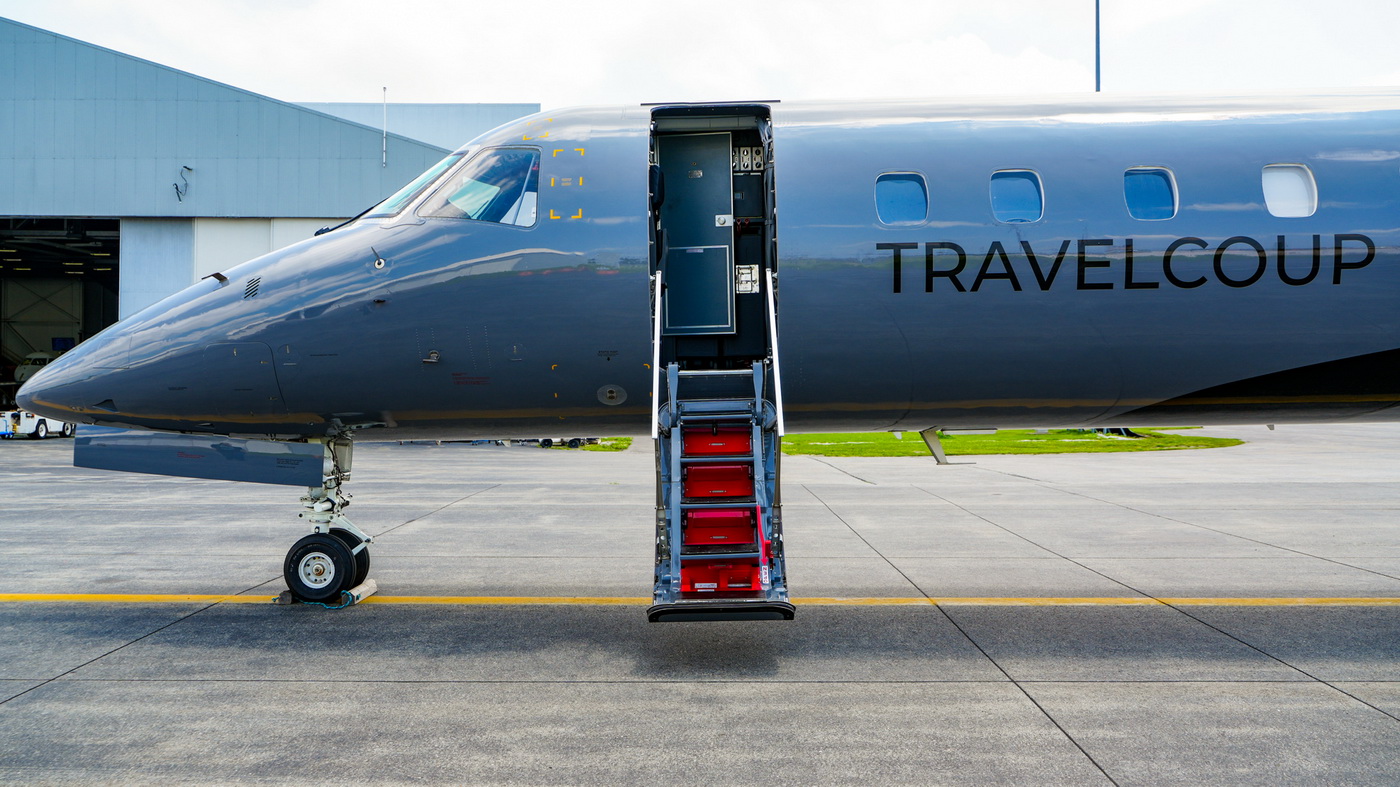 Das einzigartige Reiseerlebnis startet bereits beim exklusiven Check-in ohne lange Wartezeiten und eine persönliche Sicherheitskontrolle im Privatjet-Terminal in der Abflugdestination. An Bord der Embraer 145 bietet Travelcoup seinen Gästen 22 elegante, 58 cm breite First-Class-Ledersitze in einer 1–1‑Konfiguration und mit einer Beinfreiheit von bis zu 116 cm.
