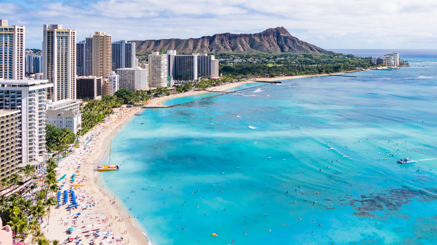 Honolulu, Hawaii, USA – Honolulu bietet eine Vielzahl von Kulturen, die sich harmonisch vermischen, wobei jede ihre Eigenheiten beibehält. Das Stadtzentrum verbindet die königliche Geschichte Hawaiis mit dem modernen Leben einer großen Metropole. Waikiki Beach mit seinen beeindruckenden Hotels und seiner glitzernden Atmosphäre ist ein berühmtes Touristenzentrum und ein Urlaubsziel von internationalem Ruf. In Honolulu befinden sich auch der Diamond Head, das berühmte vulkanische Wahrzeichen Oahus, und Pearl Harbor, der größte natürliche Hafen Hawaiis und der einzige Marinestützpunkt der Vereinigten Staaten, der zum Nationalen Historischen Wahrzeichen erklärt wurde.