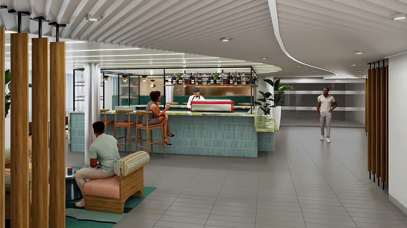 Der „Ground Club Too“ – die gefragte Kaffeebar in „The Galley“ – wird weiterhin „Intelligentsia Coffee“ servieren, um den „Sailors“ den Start in den Tag zu erleichtern, aber abends wird sie sich in eine Full-Service-Bar mit intimer Lounge und gehobenen Cocktails verwandeln. Sitzgelegenheiten an der Theke, elegante smaragdgrüne Bänke, rostfarbene Sofas und Holzlatten-Akzente verwandeln den Raum von einem energiegeladenen Frühstückscafé in einen raffinierten Treffpunkt für die Nacht.