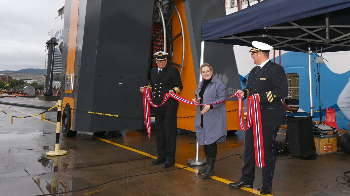 Bei der feierlichen Zeremonie begrüßten Anita Leirvik North, Vizebürgermeisterin für Kultur und Wirtschaftsförderung, sowie Einar Marthinussen, Commercial Director Port of Oslo, den Kapitän von AIDAluna, Marc-Dominique Tidow, auf der Pier. Mit dem symbolischen Akt des Durchschneidens eines Bandes wurde die Landstromanlage in den offiziellen Regelbetrieb genommen.