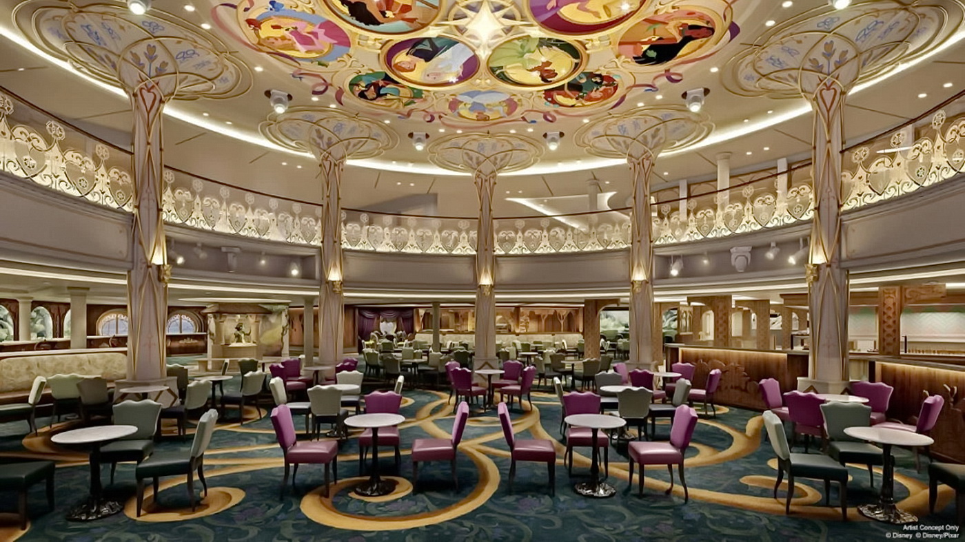 Der königliche Hof wird als Mehrzweck-Unterhaltungslounge gestaltet, in der Auftritte von Disney-Figuren sowie andere Shows und Familienaktivitäten stattfinden. Das Design ist von einem Sommergarten inspiriert, in dem Waldtiere als Teil der Architektur zu sehen sind. Die Decke der Rotunde wird ein beleuchtetes Mosaik von Disneys berühmten Königinnen, Prinzessinnen und Heldinnen sein.