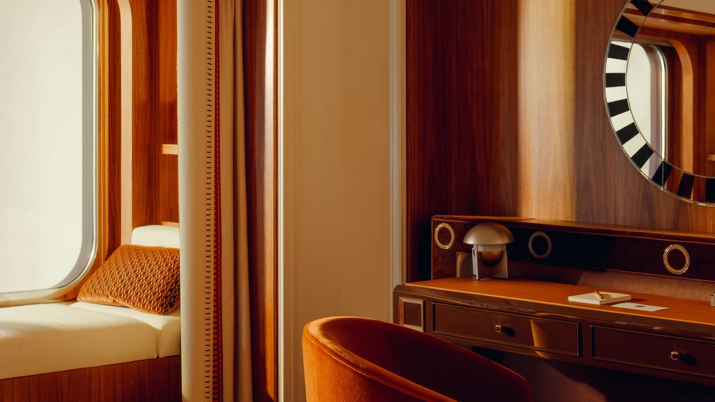 „Alle Suiten und das gesamte Ambiente dieses Segelschiffs wurden als einzigartige Räume konzipiert, die sich von der klassischen Ästhetik des Orient Express lösen und dennoch den charakteristischen Stil beibehalten. Eine zeitgenössische Vision des Orient Express, geprägt von höchster Qualität, die auf Exzellenz setzt und eine echte ästhetische Revolution herbeiführt.“