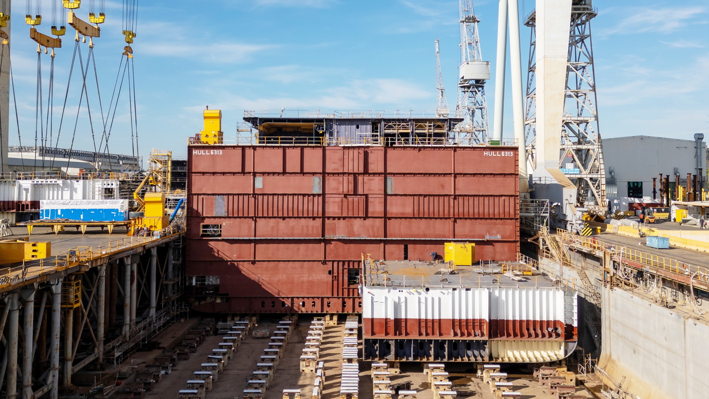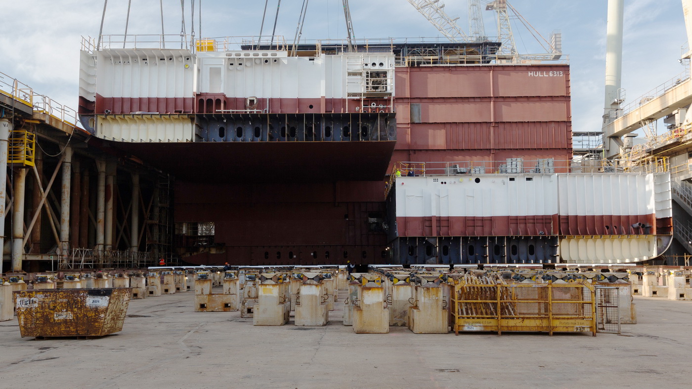 Die beiden Neubauten Mein Schiff Relax und Mein Schiff Flow, werden in der Fincantieri Werft traditionell in Blockbauweise gefertigt. Der Troncone Teil, der vordere Abschnitt des Schiffes, wurde jetzt im Trockendock verholt und bereits mit weiteren Schiffsblöcken, die in der Werft gebaut wurden, ergänzt. Nun werden nach und nach die weiteren Blöcke eingebaut und miteinander verbunden, bis das Schiff seine Silhouette erreicht hat.