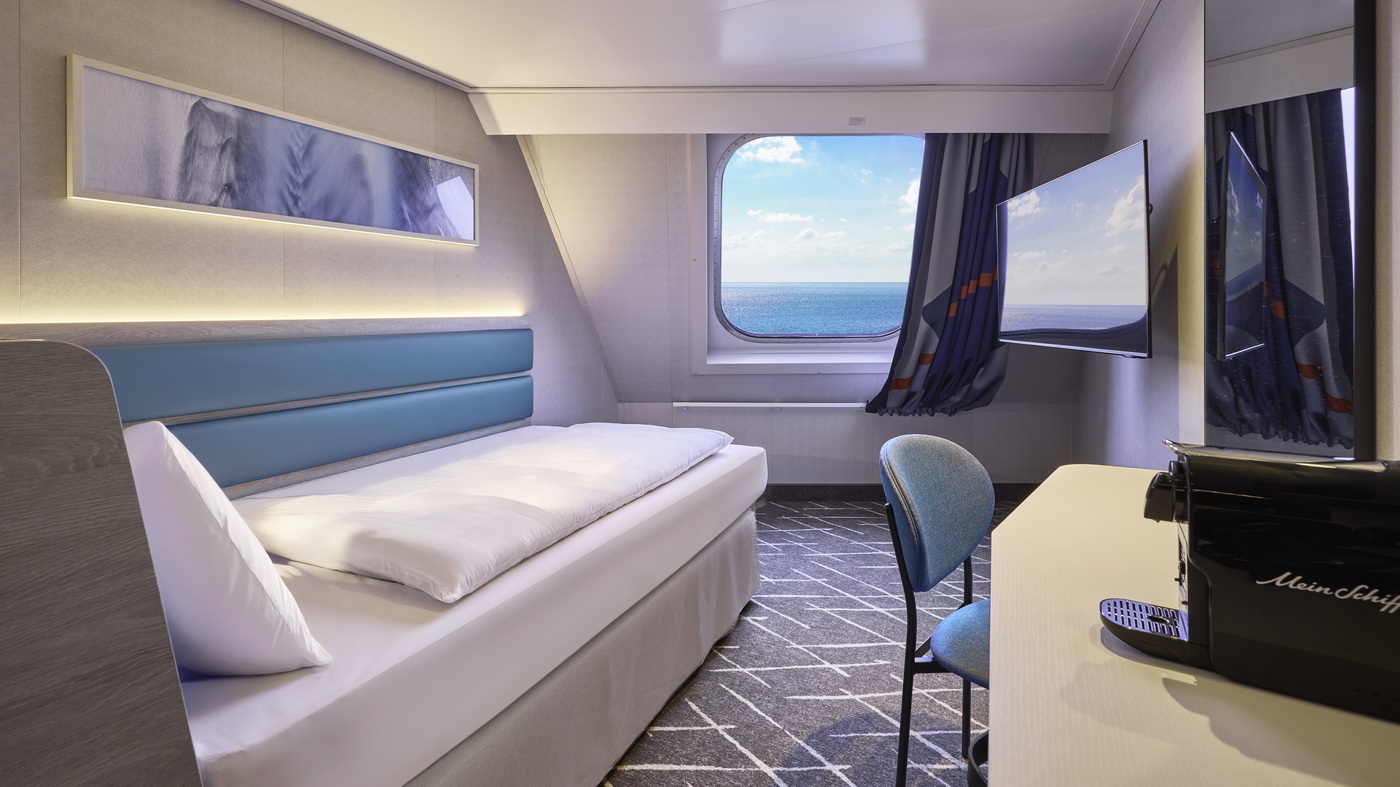 Neben den sieben Innen- und neun Außenkabinen für Alleinreisende, die es auch bereits auf der Mein Schiff 7 gibt, bietet die Mein Schiff Relax nun auch zehn Balkonkabinen für Alleinreisende und kommt damit dem Wunsch vieler Gäste nach. Ein Highlight dieser Kabinen ist, dass direkt vom 1,20 Meter breitem Bett aus die Gäste den Blick aufs Meer genießen können.