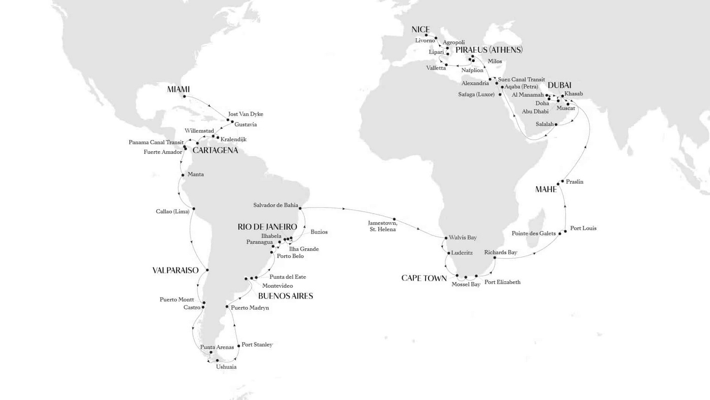 Alle Gäste kommen in den Genuss eines persönlichen Butler-Service und eines der besten Verhältnisse zwischen Besatzung und Gästen in der Branche. Die Kreuzfahrt führt in die Karibik, nach Südamerika, Afrika, in den Nahen Osten und endet in Europa.
