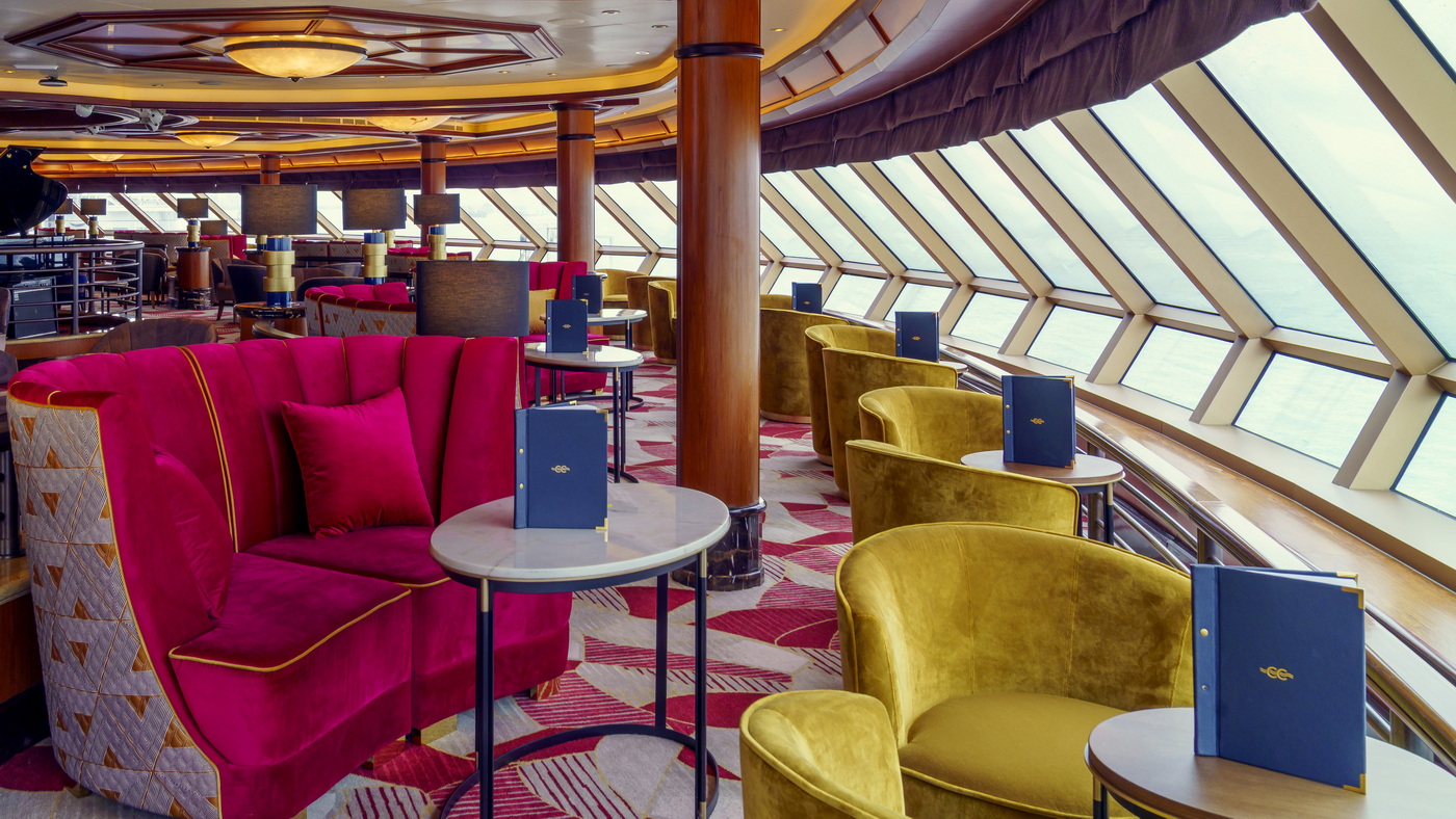 Die charakteristischen Bereiche der Queen Elizabeth, wie der Commodore Club, der Queens Room, die Garden Lounge und der Pavillon, wurden farblich passend modernisiert und bieten den Gästen einen perfekten Platz zum Entspannen oder für ein Essen im Freien, mit Blick auf den Ozean.