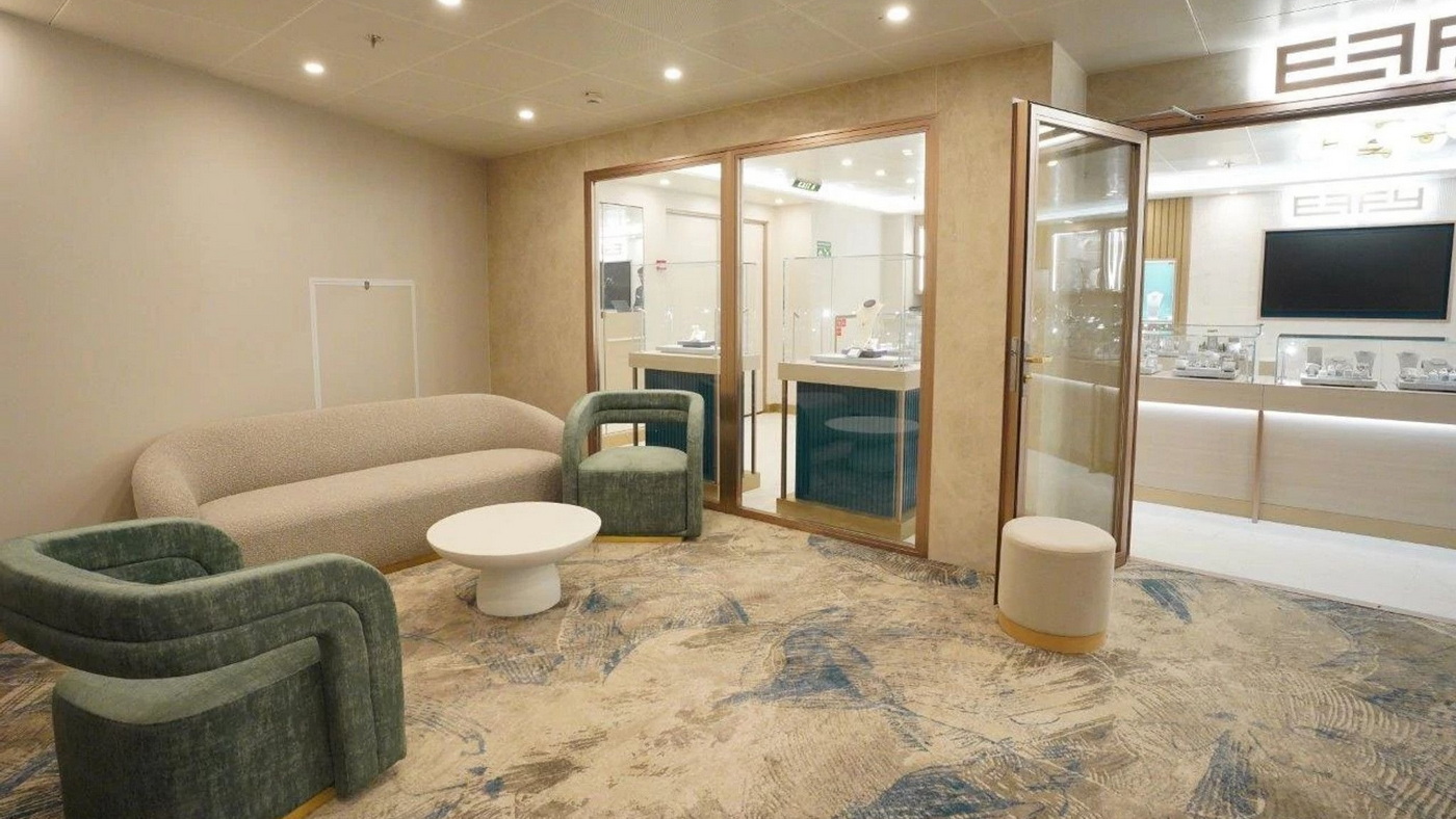 Auf der Oosterdam wurden eine neue Effy Lounge und ein neues Geschäft eingerichtet. Effy ersetzte ein kleines Kino durch ein einzigartiges Einkaufserlebnis. Die Effy Lounge und das Geschäft bieten zwei unterschiedliche Bereiche, die die Gäste erkunden können. Bevor die Gäste das Geschäft betreten, werden sie in einer komfortablen Lounge begrüßt, wo sie sich mit einem Effy-Schmuck-Mitarbeiter treffen können, um ihren Einkauf zu beginnen. Dort können sie ein Getränk genießen, während sie nach dem perfekten Schmuckstück suchen. Das Geschäft selbst spiegelt das Aussehen und die Atmosphäre des Effy-Flagship-Stores in der Fifth Avenue in New York City wider.