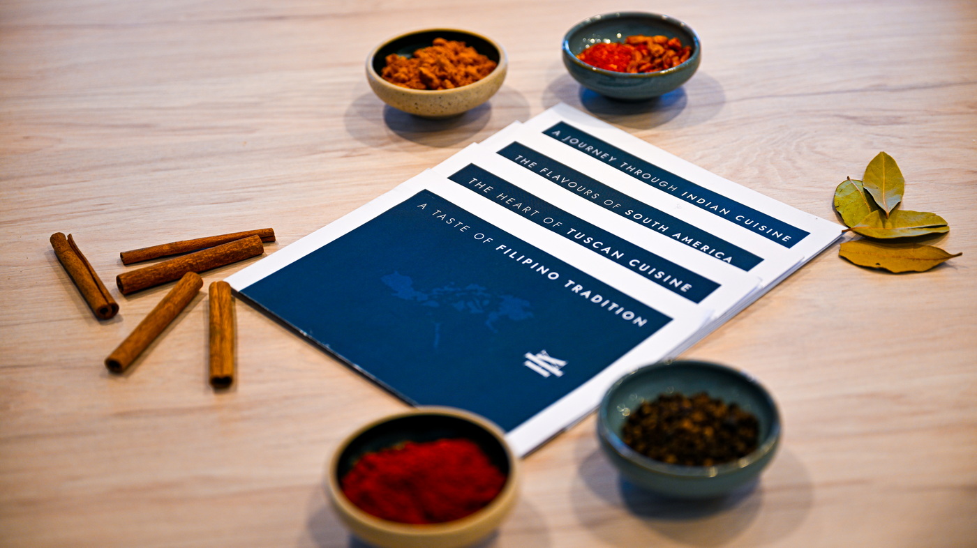 - Reise durch die indische Küche: Gewürzreiche Spezialitäten von Samosas und Bhajis über eine Thali-Platte mit Chicken Tikka Masala, Palak Paneer und Linsendal bis hin zu süßen Gulab Jamun. Dieses Menü ist eine Hommage an die vielfältigen kulinarischen Traditionen Indiens und nimmt die Gäste mit auf eine Reise zu regionalen Spezialitäten mit kräftigen Gewürzen.
