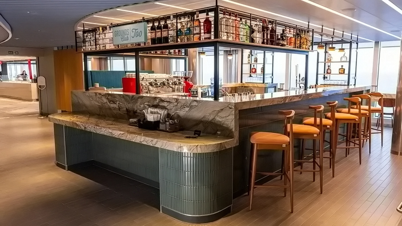 Das „Draught Haus“ wurde als sozialer Anker auf See neu konzipiert und soll sich zu einem Treffpunkt entwickeln, der jetzt weit über Bier hinausgeht. Nach wie vor wird hier eine gut durchdachte Auswahl an handwerklich gebrauten Bieren serviert, das Angebot aber gleichzeitig um Kaffee und eine Bar erweitert, die den ganzen Tag über ein Zentrum der Begegnung mit Cocktails, Wein und Sekt bildet.