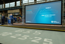 Bei der Feier wurde der allererste Baustein in das Trockendock gelegt, in dem der Bau des Schiffes stattfinden wird. Die Teams von Royal Caribbean und Meyer Turku besiegelten den Vertrag und das Glück, indem sie eine Schicht frisch geprägter Münzen vor einen riesigen Stahlblock, den sogenannten Kiel, legten, bevor dieser angehoben und platziert wurde.
