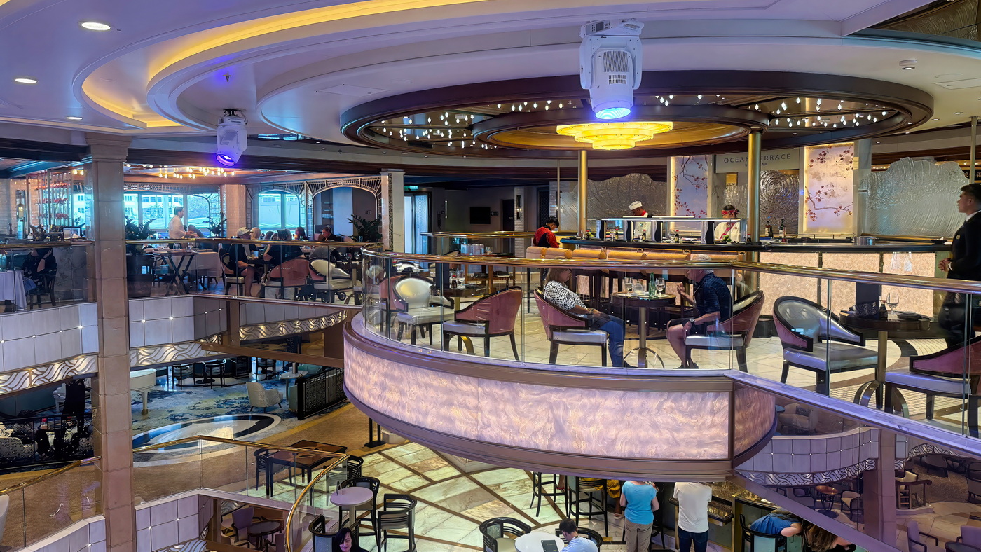 Die meisten Veränderungen nach der jüngsten Modernisierung betrafen die Spezialitätenrestaurants und Bars im Atrium, wo gleich mehrere Princess-Klassiker eingezogen sind. Besonders freuen wird die Stammgäste der Reederei, dass das chinesische „Harmony Restaurant“ durch die „Sabatini’s Italian Trattoria“ ersetzt wurde. Das beliebte Lokal ist für seine hervorragenden italienischen Gerichte bekannt, die als 3‑Gänge-Menüs serviert werden.
