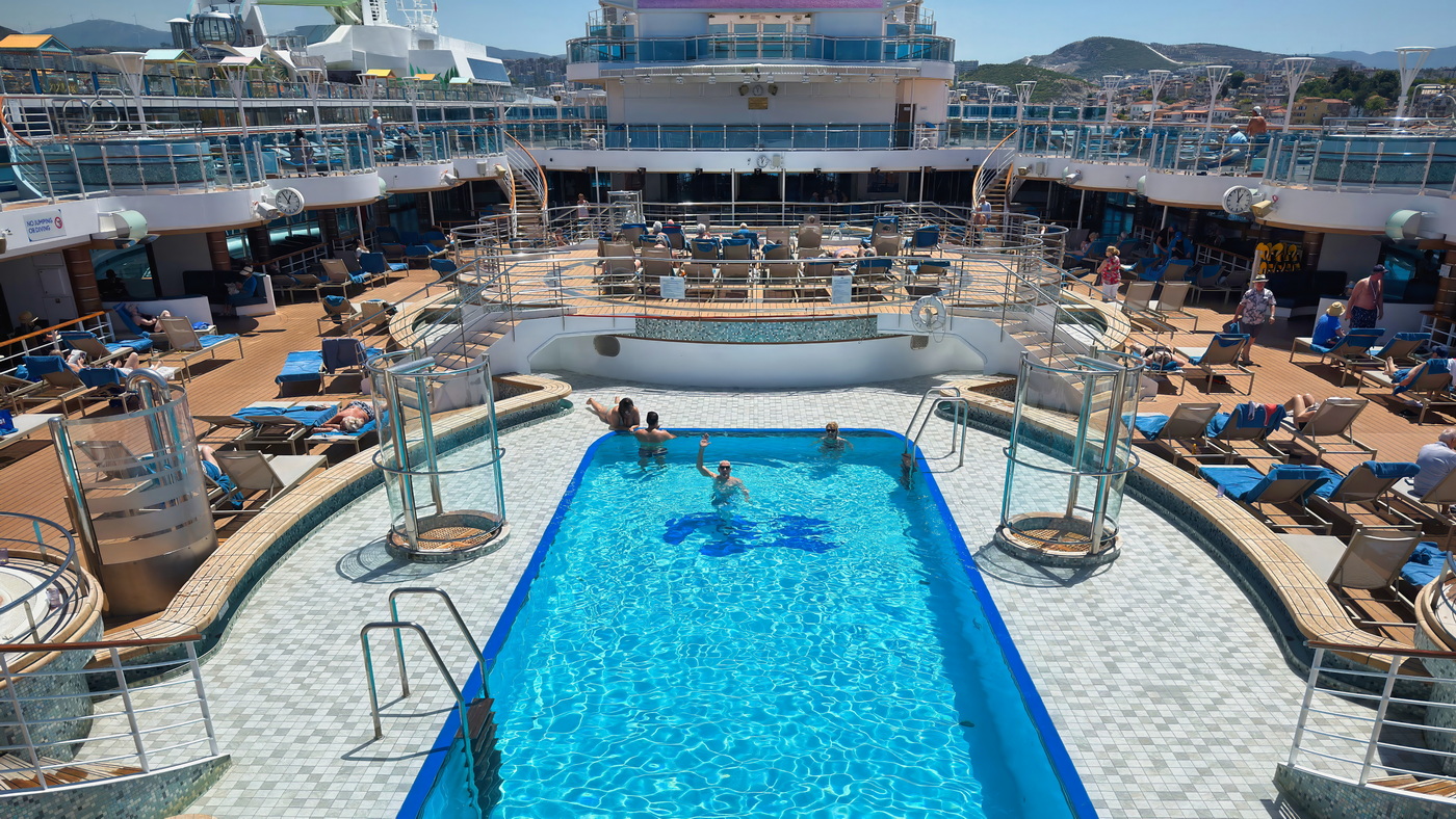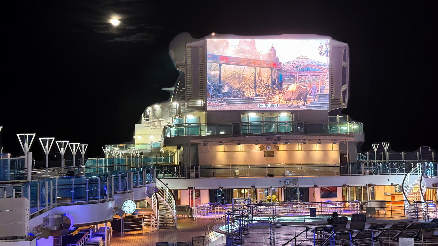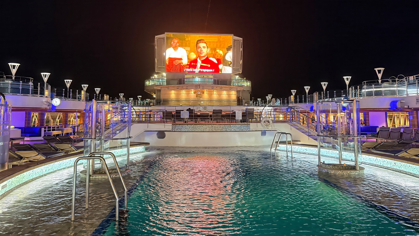 Wer gerne tanzt, kann dies zu Live-Musik in der „Vista Lounge“ oder im Atrium tun. Wir waren abends aber fast immer auf dem Pooldeck zu finden, wo aktuelle Blockbuster unter dem Motto „Movies under the Stars“ auf der riesigen LED-Leinwand zu sehen waren – perfekt für warme Sommerabende.