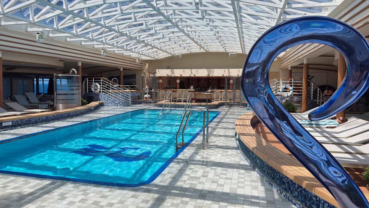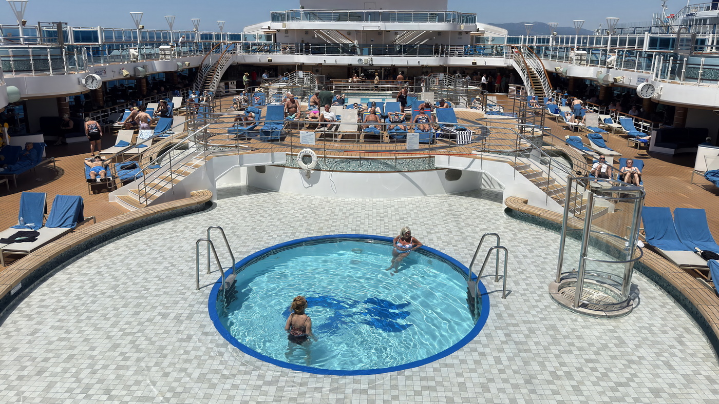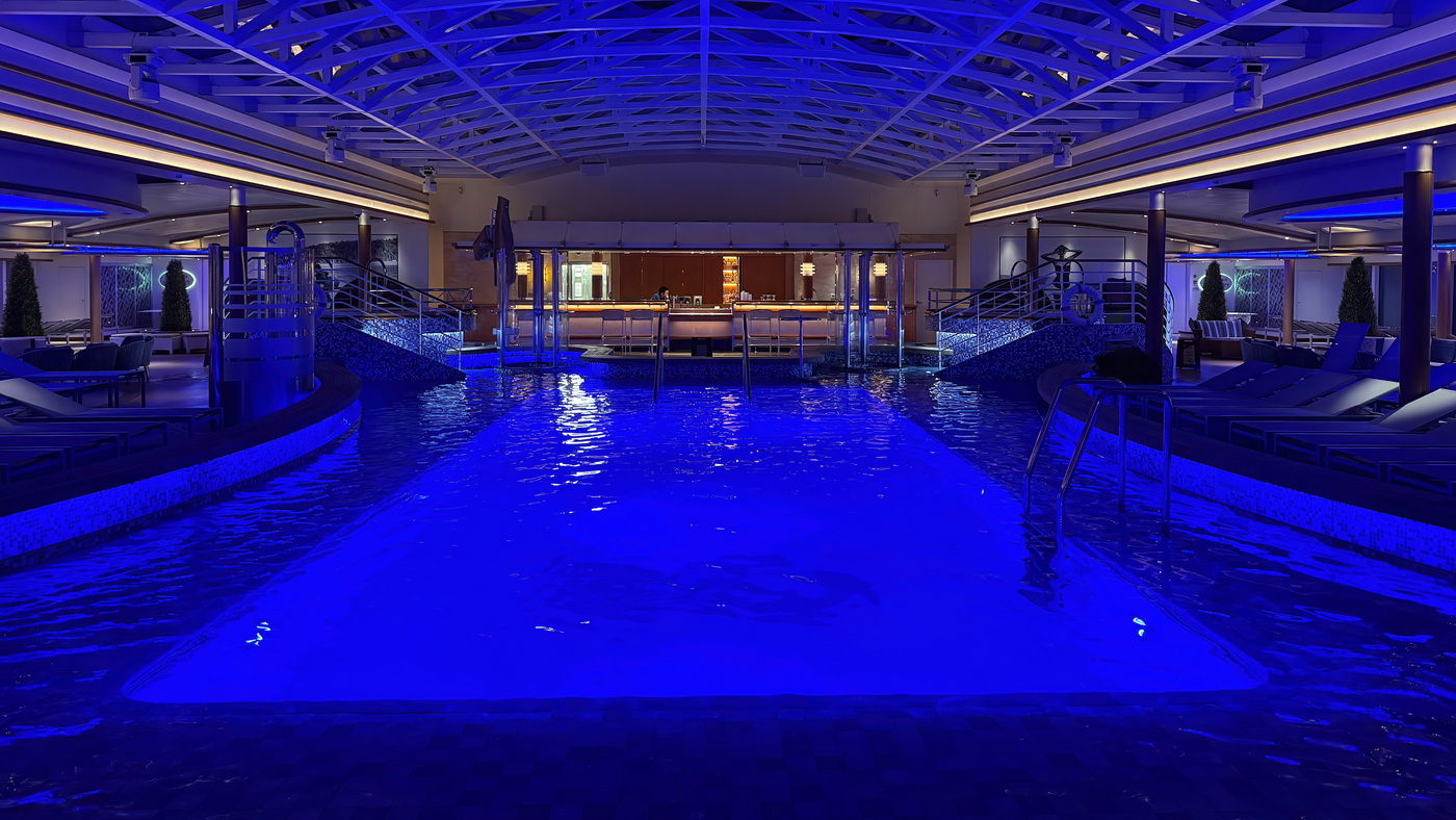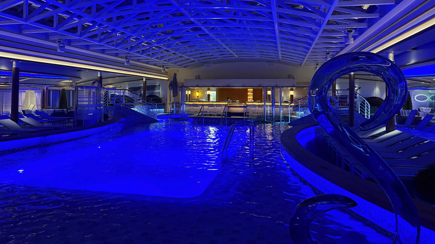Es gibt aber auch Bereiche an Bord, die sich nicht verändert haben und die Majestic Princess nach wie vor einzigartig in der gesamten Princess-Flotte machen. Dazu gehört allen voran der nur für Erwachsene zugängliche „Hollywood Pool Club“, der auf den anderen Schiffen der Royal-Klasse als „The Retreat“ bekannt ist. Anders als die „Retreats“ handelt es sich hier aber um eine klimatisierte Halle mit Glaswänden rechts und links und einem Glasdach darüber, die mit einem großen Pool, zwei Whirlpools, Liegestühlen und Cabanas aufwartet. Für uns der absolute Lieblingsplatz an Bord. Perfekt ist diese Location aber natürlich vor allem an Tagen mit weniger gutem Wetter. Deshalb ist das Schiff besser für kühlere Regionen geeignet als für das Mittelmeer im Sommer.