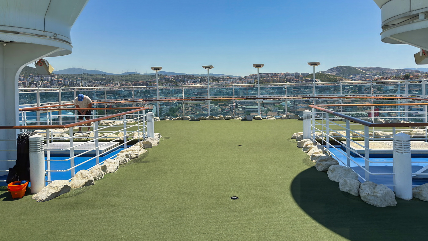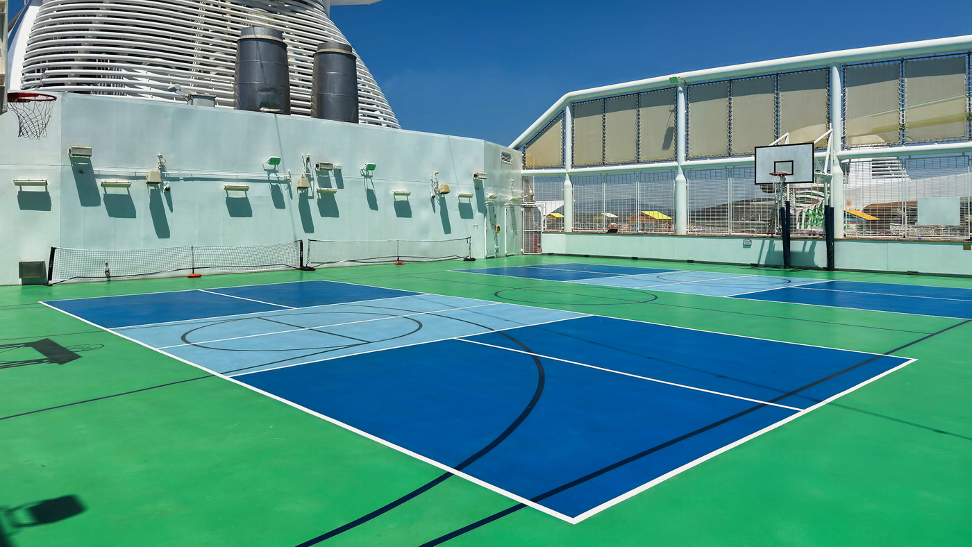 Wer im Urlaub nicht auf seine gewohnten Trainingseinheiten verzichten will, findet auf Deck 17 ein geräumiges und bestens ausgestattetes Fitnesscenter vor, in dem auch Kurse wie Yoga, Pilates und Aerobic stattfinden. Für Bewegung an der frischen Luft steht das „Princess Sports Central“ bereit – ein Outdoor-Sportkomplex auf Deck 18, der sich für Aktivitäten wie Basketball, Tennis, Volleyball oder Badminton eignet. Eine Joggingbahn mit Meerblick, ein Outdoor Exercise Circuit, Tischtennis, Minigolf auf „The Greens“ sowie ein Driving Cage und ein Mini-Putting Green für Golfer runden das sportliche Angebot an Bord ab.