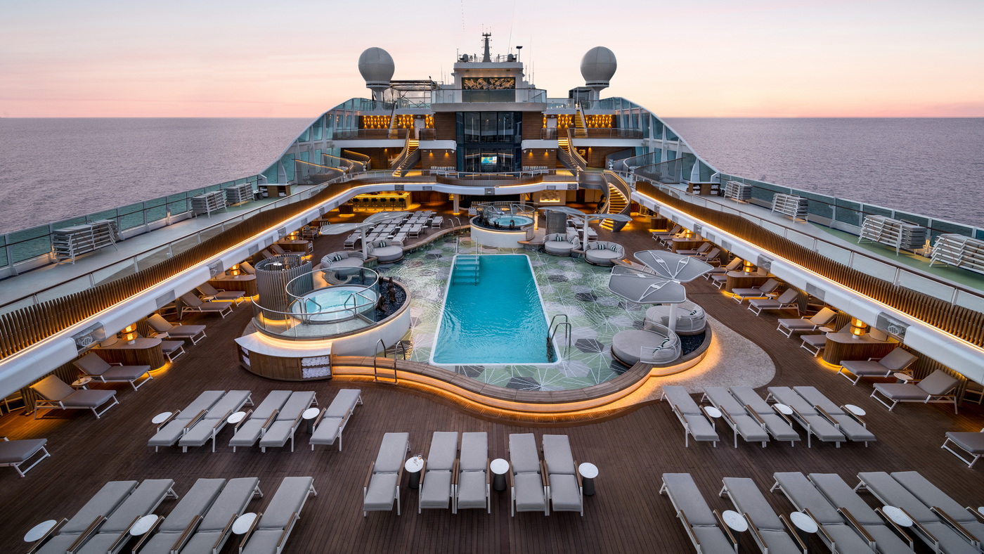 - Das Schiff bietet Platz für 1.200 Gäste und verfügt über Kabinen mit Veranda, darunter die geräumigsten Standardkabinen auf See mit beeindruckenden 27 Quadratmetern.