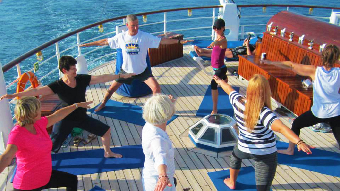 Star Clippers holt für alle Yoga-Kreuzfahrten international ausgebildete Kursleiterinnen an Bord der Schwesterschiffe Star Flyer und Star Clipper sowie des Fünfmasters Royal Clipper. Der Yoga-Unterricht findet morgens oder abends auf Deck und unter weißen Segeln statt, Vorkenntnisse oder eine Voranmeldung sind nicht erforderlich.