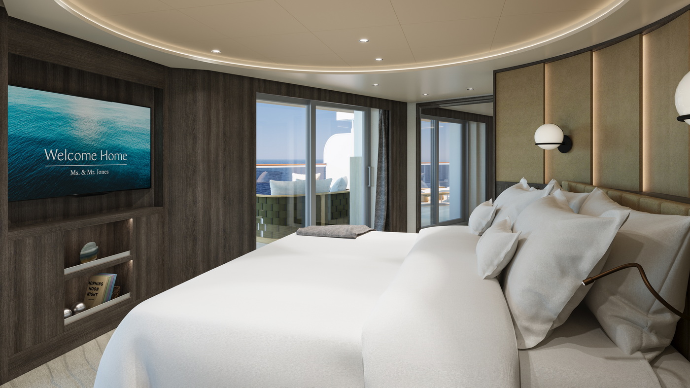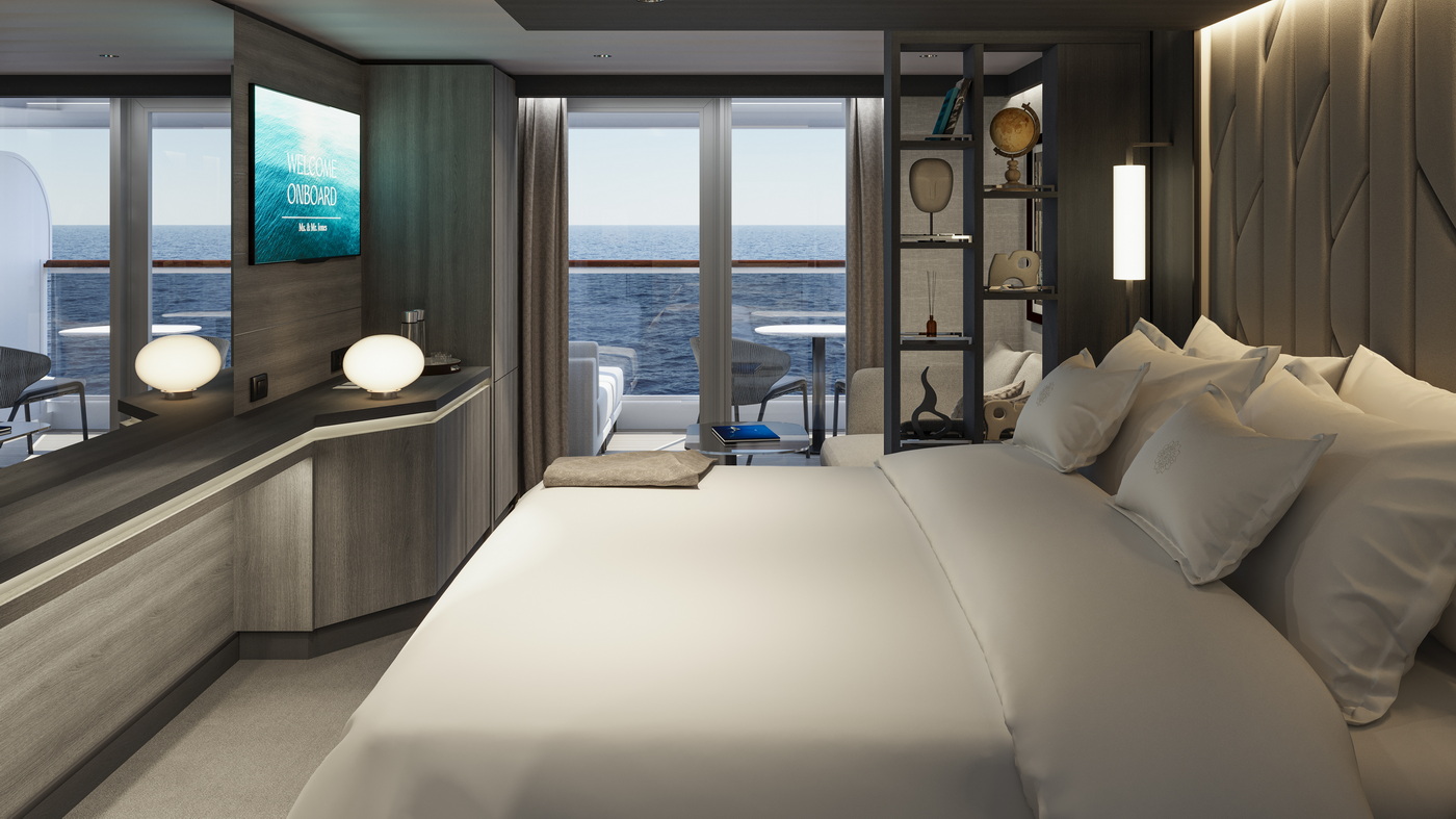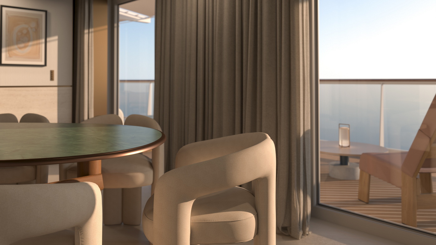 Die neue Owner’s Residence auf Deck 7 ist ein Symbol für das kontinuierliche Engagement von Explora Journeys, mit visionären Köpfen zusammenzuarbeiten. Sie wurde von Patricia Urquiola, einer der weltweit renommiertesten Architektinnen und Designerinnen, gestaltet und nimmt die Gäste mit auf eine emotionale und sinnliche Reise durch Design, Licht und Bewegung. Im Inneren schaffen warme, haptische Materialien, zeitgemäße europäische Einrichtung und kuratierte Kunstwerke einen Rückzugsort mit Nest-Charakter, ergänzt durch ein Marmorbad und ein privates Dampfbad. Im Außenbereich laden ein privater Whirlpool, Daybeds sowie Dining- und Lounge-Bereiche zu einem intensiven Indoor-Outdoor-Living ein.