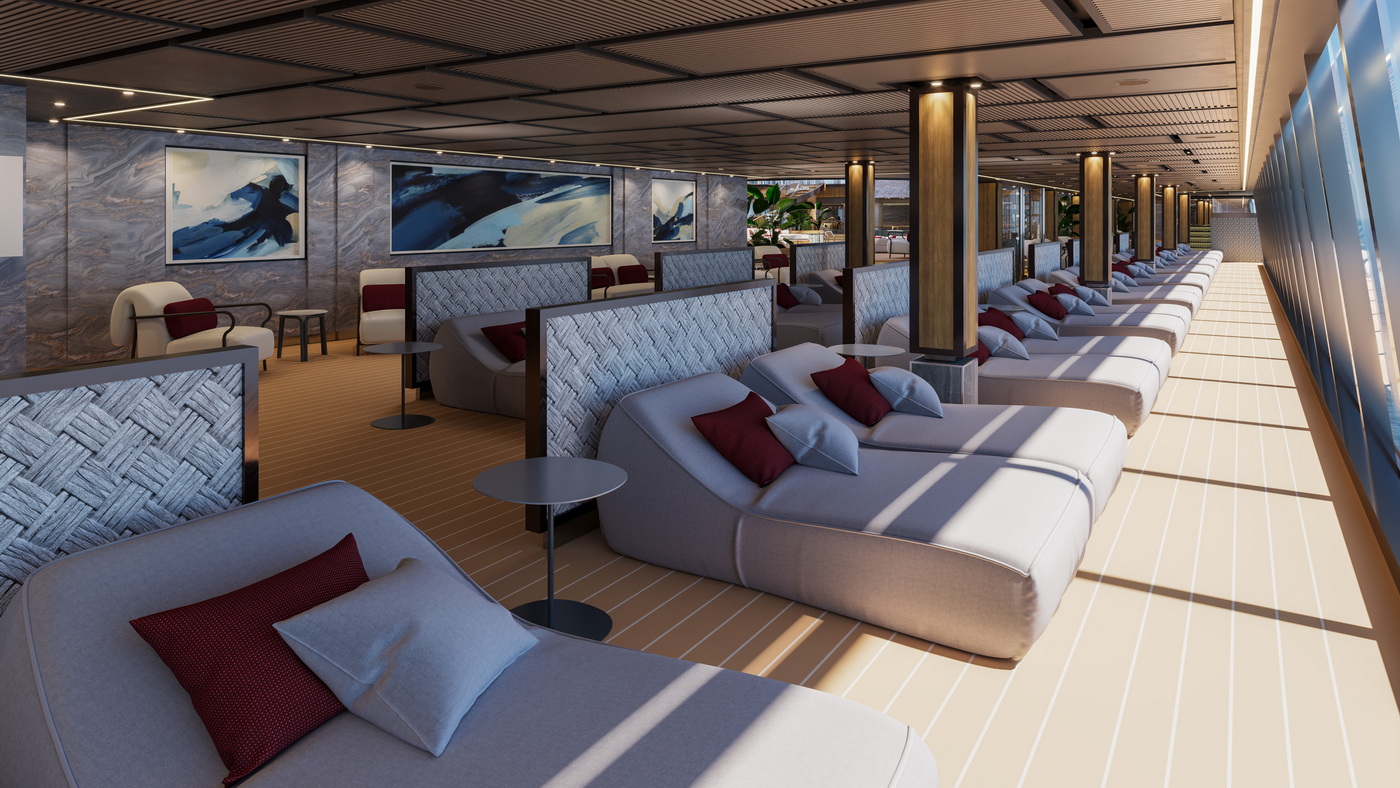 Zusätzlich gibt es drei Outdoor-Swimmingpools, alle beheizt, davon einer exklusiv für Erwachsene. An Bord stehen den Gästen außerdem fünf beheizte Whirlpools im Innen- und Außenbereich zur Verfügung. Insgesamt 60 private Cabanas sowie erweiterte, schattige Bereiche auf den Decks sorgen für noch mehr Komfort und Entspannung.