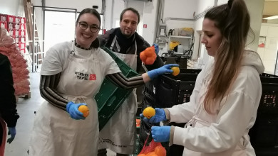Im Rahmen der Aktion unterstützten Costa Mitarbeiter die Sortierung und Verteilung geretteter Lebensmittel.